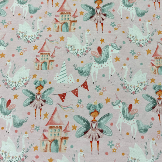 Fairy Tale on Pink Organic Cotton/Spandex Jersey Fabric