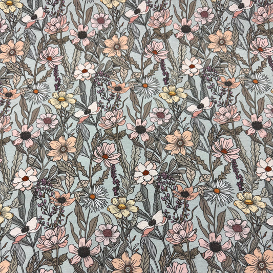 Wildflower Field on Dust Organic Cotton/Spandex Jersey Fabric