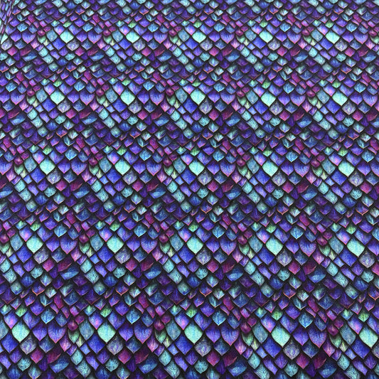 Purple Metal Scales on Organic Cotton/Spandex Jersey Fabric