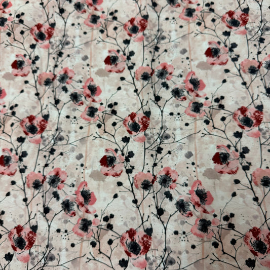 Red and Tan Blossoms on Organic Cotton/Spandex Jersey Fabric