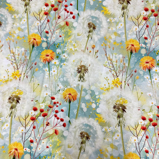 Dandelion Field on Organic Cotton/Spandex Jersey Fabric