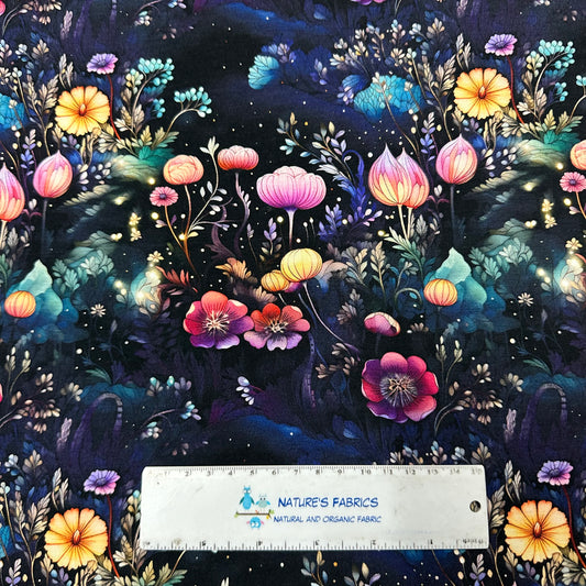 Midnight Garden on Organic Cotton/Spandex Jersey Fabric