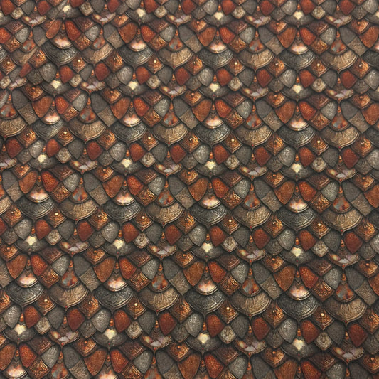 Gold and Brown Metal Scales on Organic Cotton Stretch French Terry Fabric