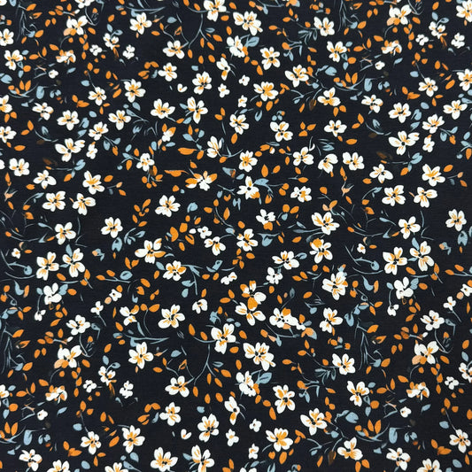 Vintage Floral on Navy Organic Cotton Stretch French Terry Fabrics