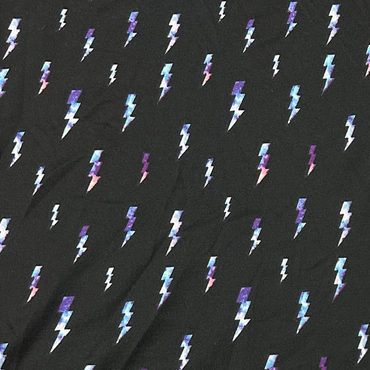 Lightning on Black Poly Blend Interlock Fabric