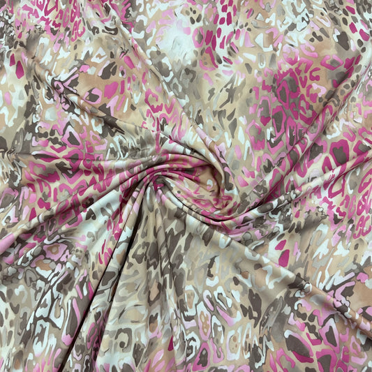 Pink and Tan Leopard on Polyester Jersey Fabric