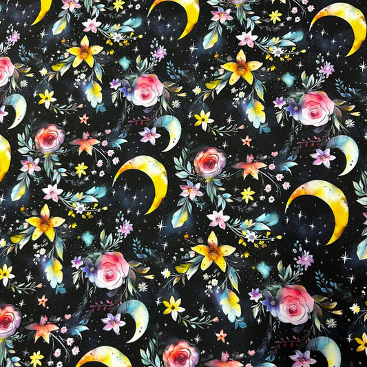 Magic Moon Garden on Polyester/Spandex Jersey Fabric