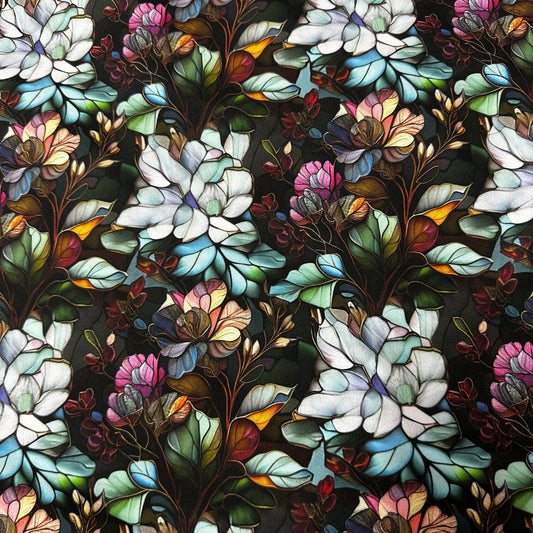 Stained Glass Water Lilies on Polyester/Spandex Jersey Fabric