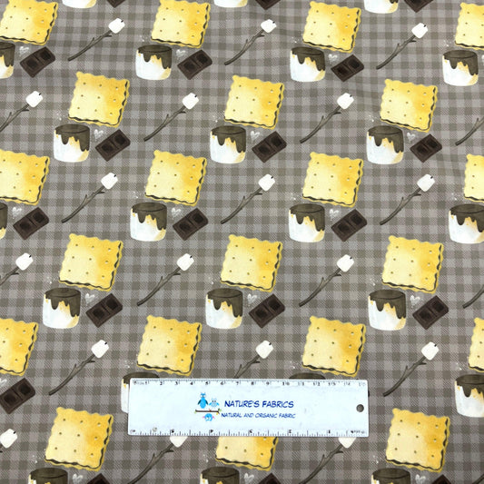 Smores on Brown Plaid 1 mil PUL Fabric - Made in the USA