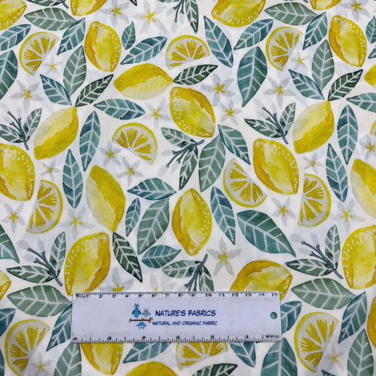 Lemons on White 1 mil PUL Fabric - Made in the USA