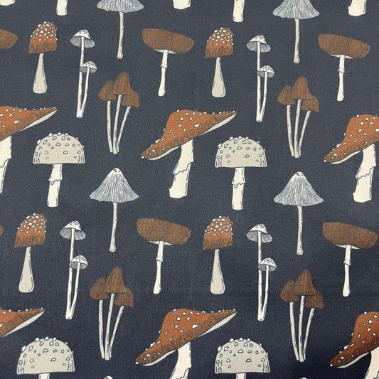 Mushrooms on Navy 1 mil PUL Fabric - Made in the USA