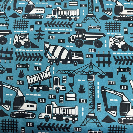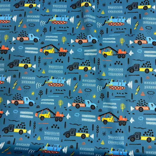 Trucks and Bulldozers on 1 mil PUL Fabric - Made in the USA