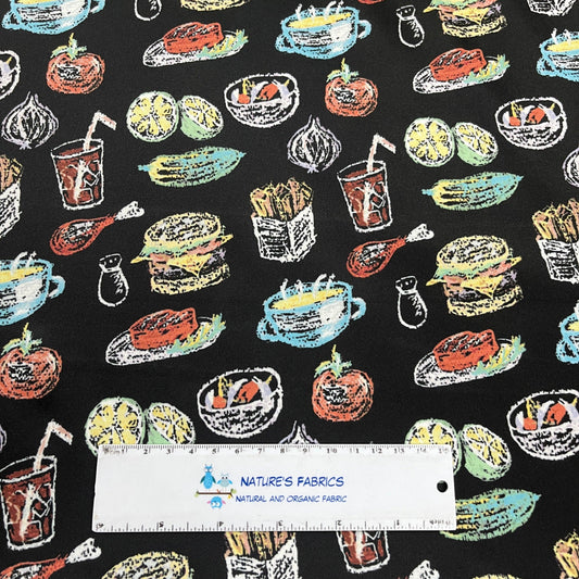 Chalk Art Food on Black 1 mil PUL Fabric - Made in the USA