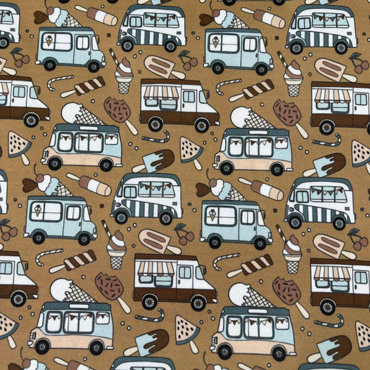 Ice Cream Trucks on Brown 1 mil PUL Fabric - Made in the USA