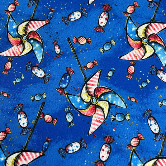 Red, White and Blue Pinwheels 1 mil PUL Fabric - Made in the USA