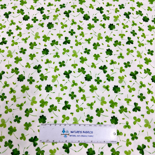 Shamrocks on White 1 mil PUL Fabric- Made in the USA