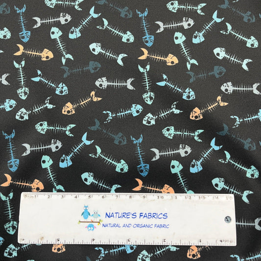 Fish Bones on Black 1 mil PUL Fabric - Made in the USA