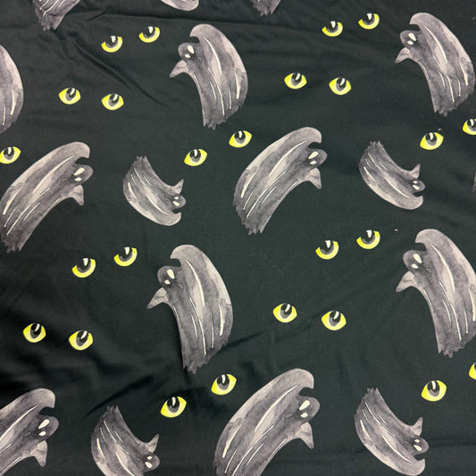 Cats and Ghosts on Black 1 mil PUL Fabric - Made in China- Seconds
