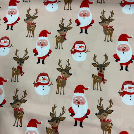 Santa and Reindeer on Peach 1 mil PUL Fabric - Made in China- Seconds
