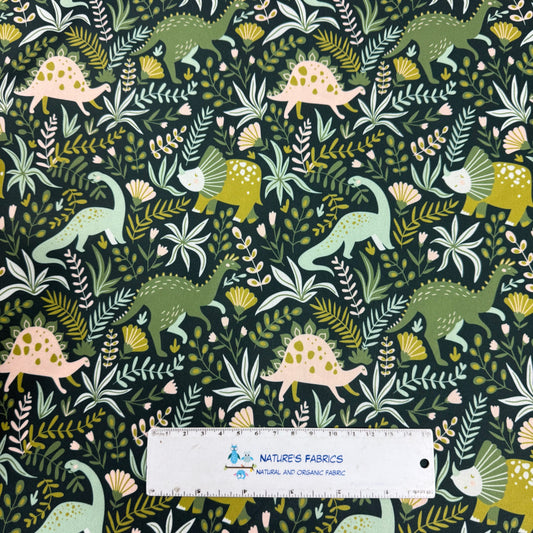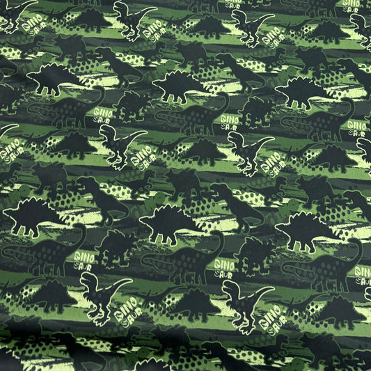 Green Dino on Green 1 mil PUL Fabric - Made in the USA