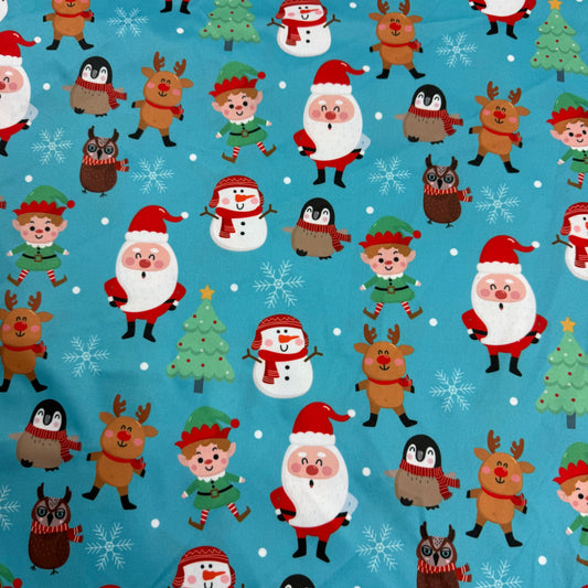 Santa and Friends on Blue 1 mil PUL Fabric - Made in China- Seconds