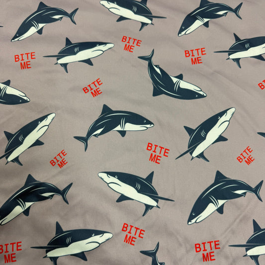 Bite Me Sharks on 1 mil PUL Fabric - Made in China- Seconds