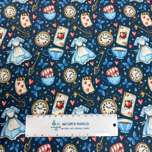 Alice in Wonderland on Blue 1 mil PUL Fabric - Made in the USA