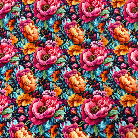 Vibrant Peonies on Bamboo/Spandex Jersey Fabric