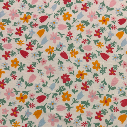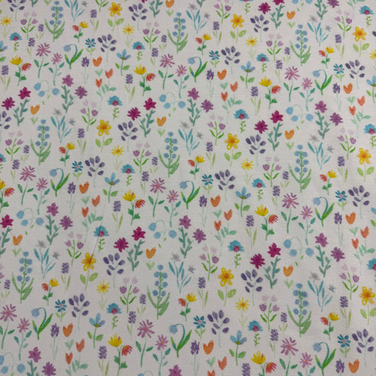 Pastel Dainty Flowers on Off White Bamboo/Spandex Jersey Fabric - Printed in the USA
