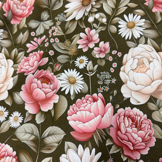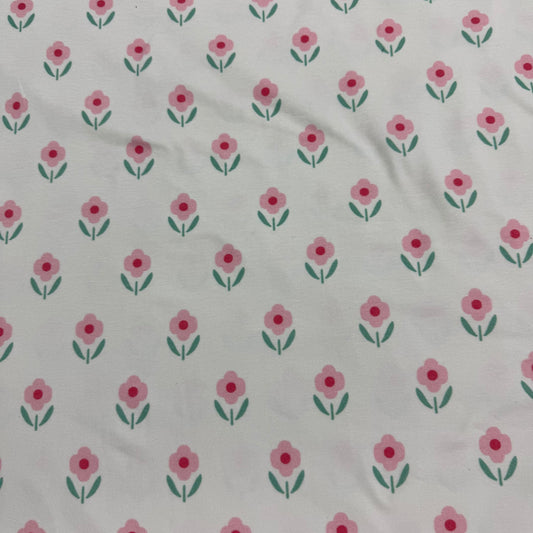 Pink and Ivory Floral on Bamboo/Spandex Jersey Fabric