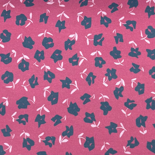 Magenta and Blue Flowers on Bamboo/Spandex Jersey Fabric