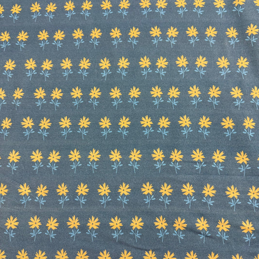 Tan Flowers on Blue Bamboo/Spandex Jersey Fabric - Printed in the USA