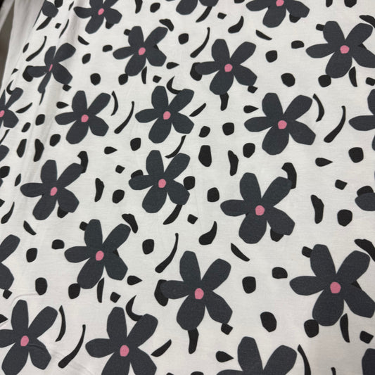 Dark Gray Flowers on Off White Bamboo/Spandex Jersey Fabric - Printed in the USA