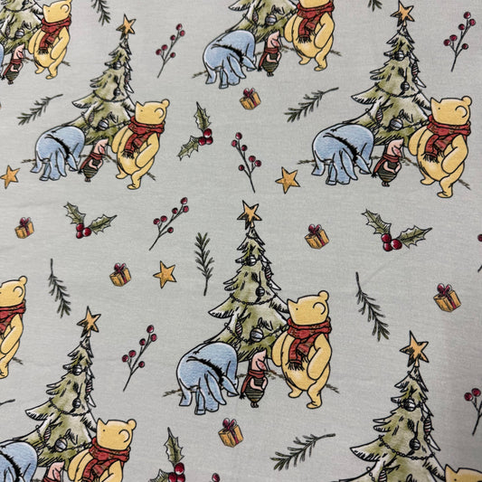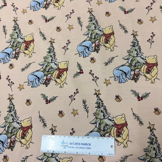Winnie the Pooh Christmas on Tan Bamboo/Spandex Jersey Fabric