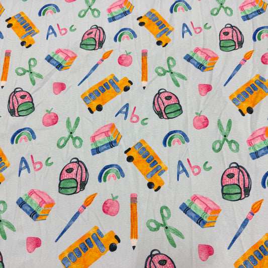 Back to School on Blue Bamboo/Spandex Jersey Fabric - 200 GSM