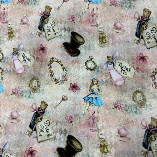 Alice and the White Rabbit on Watercolor Bamboo/Spandex Jersey Fabric