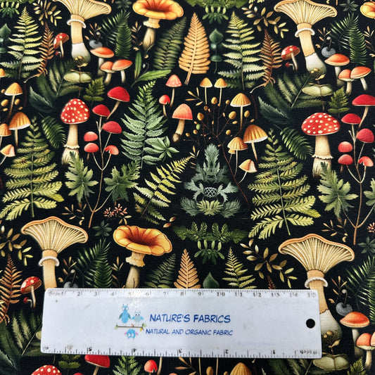 Ferns and Mushrooms on Bamboo/Spandex Jersey Fabrics