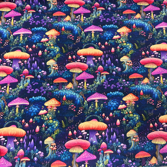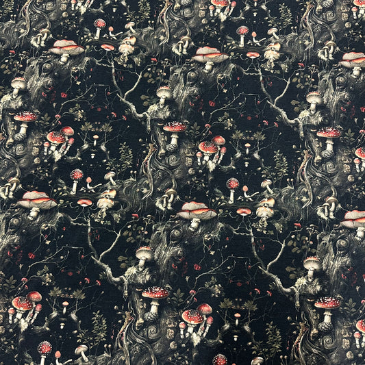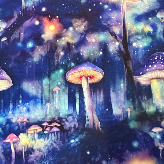 Mushroom Forest at Night on Bamboo/Spandex Jersey Fabric