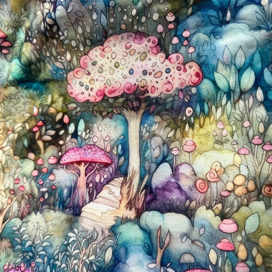 Pink Enchanted Forest on Bamboo/Spandex Jersey Fabric