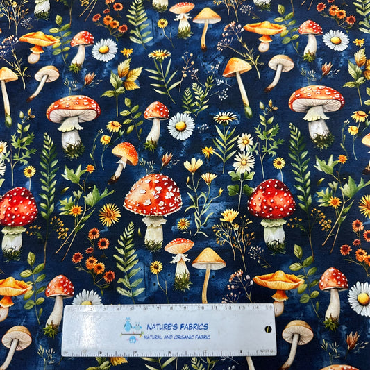 Marvelous Mushrooms on Bamboo/Spandex Jersey Fabric