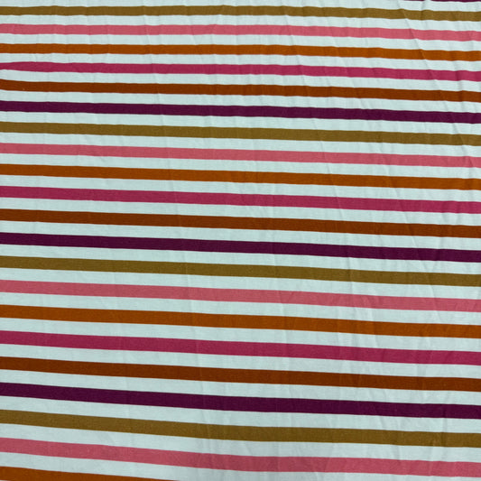 Distressed Earth Tone Stripes on White Bamboo/Spandex Jersey Fabric