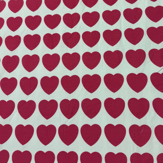 Hot Pink Hearts on Off White Bamboo/Spandex Jersey Fabric- Printed in the USA