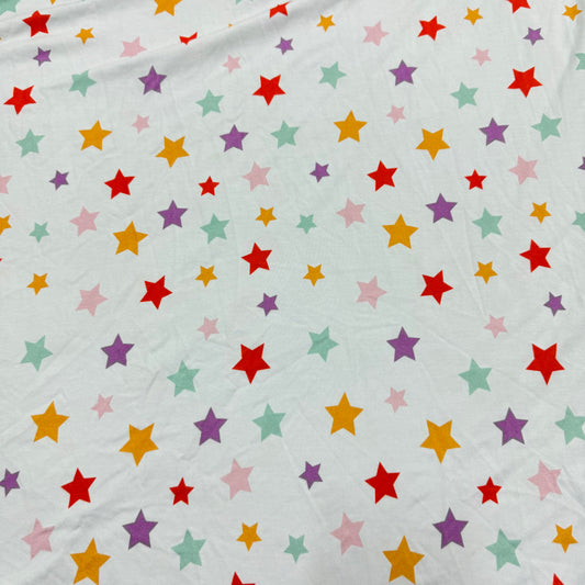 Multicolor Stars on White Bamboo/Spandex Jersey Fabric - 200 GSM
