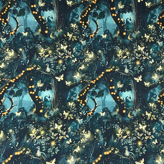 Glowing Mythical Forest on Bamboo/Spandex Jersey Fabric