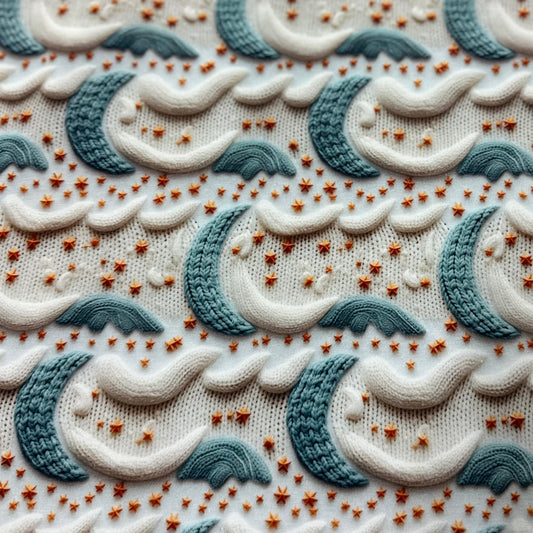 Knitted Moons on Bamboo/Spandex Jersey Fabric