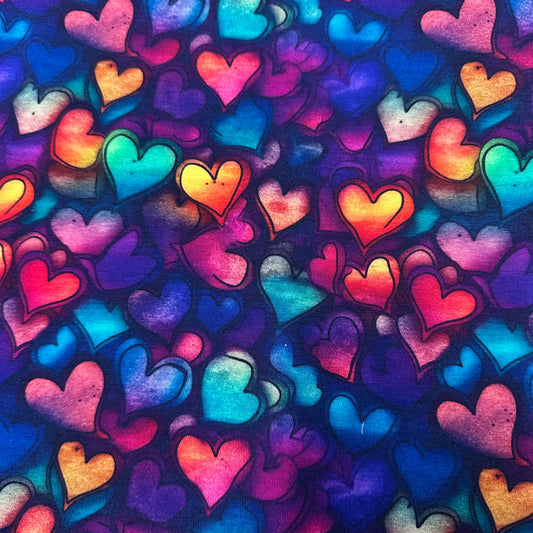 Rainbows and Hearts on Bamboo/Spandex Jersey Fabric