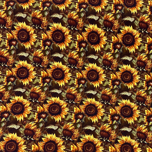 Sunflowers on Brown Bamboo Stretch French Terry Fabric