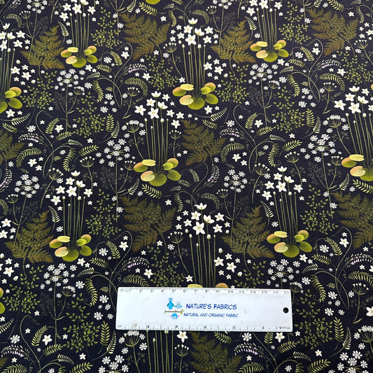 Ferns on Black Bamboo Stretch French Terry Fabric