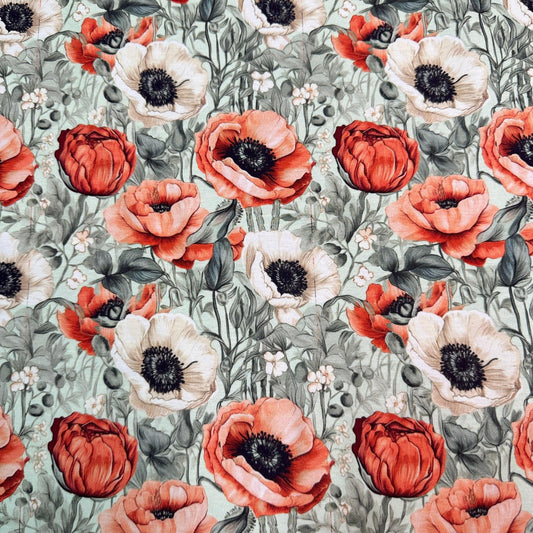 Poppy Garden on Bamboo Stretch French Terry Fabric
