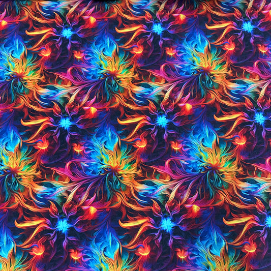 Stained Glass Pink, Purple and Mint Flowers on Bamboo Stretch French Terry Fabric